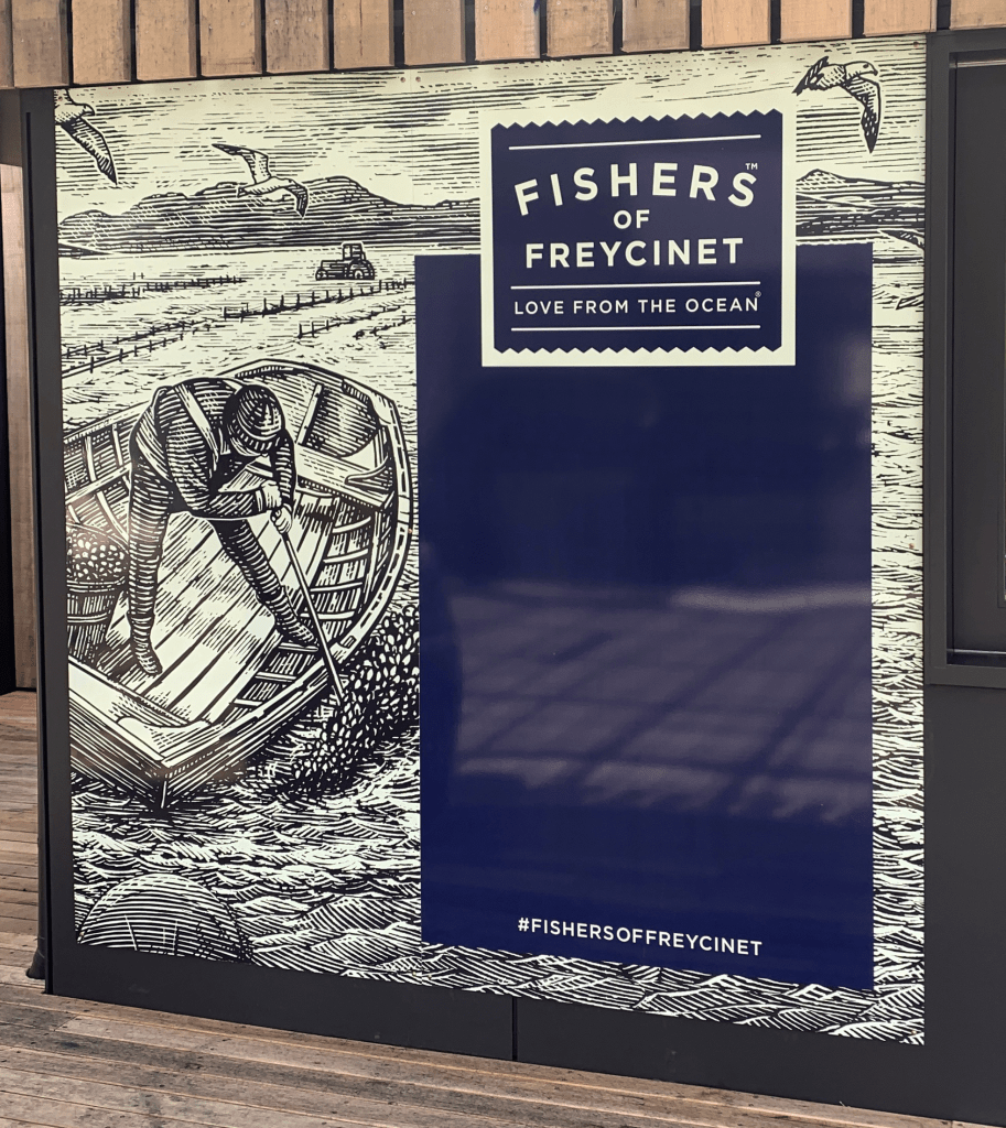 Fishers of Freycinet also have a bricks and mortar store where they sell their award-winning seafood fresh products and as delicious meals. Utilising the striking illustrations, menu board signage was designed for the store. Manipulation, plus enhancement was required for the illustrations to fit the necessary layouts and to convey a premium look.