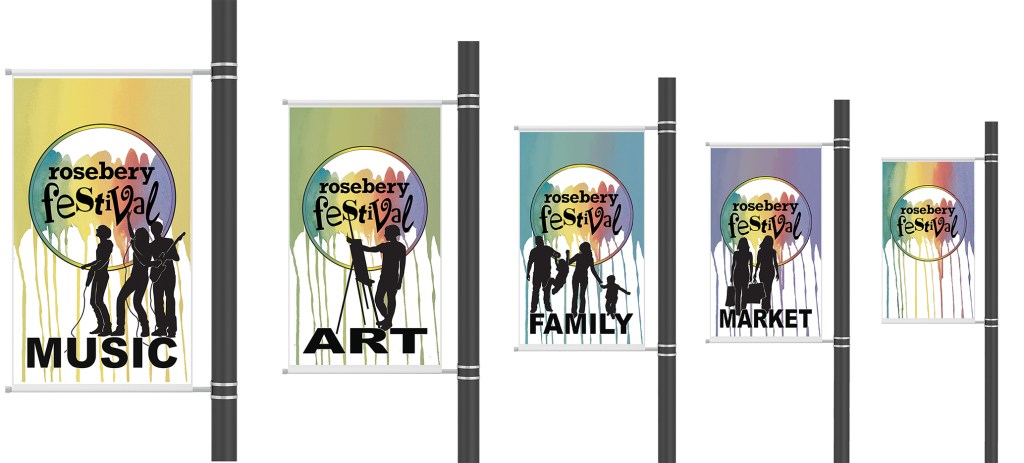 Due to a grant the Rosebery Festival were able to purchase signage to be used every year. The post banners claim the different elements the festival provides.