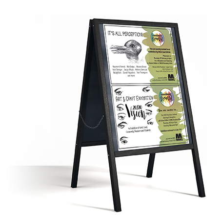 Utilising the new logo and some identity elements these posters were designed. Two art exhibitions were being held in the same venue, so the posters were designed to be hung separately or together (as shown)